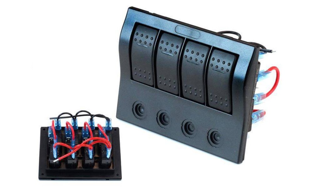 - Waterproof switch panel with pre-installed switches and automatic circuit breakers