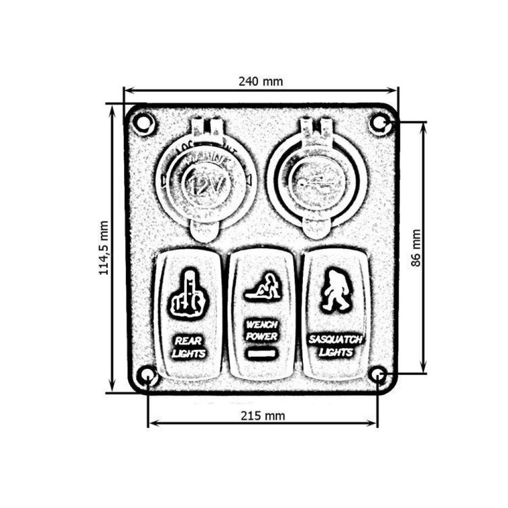 12-24V Waterproof ON-OFF Switch Panel with USB & 15A Ports