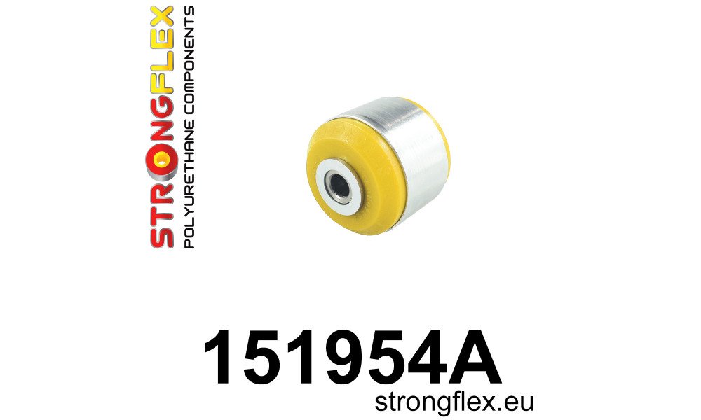 - The bush is exclusively available in a 90ShA hardness (yellow), as the original rubber bush is constructed from a hard rubber compound. Opting for the 80ShA hardness bush (red) will compromise the vehicle's performance, reverting it to the characteristics of the original rubber bush.