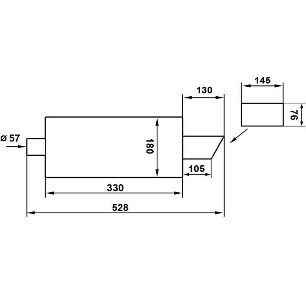 76x148mm Rear Muffler with 57mm Inlet - High Performance