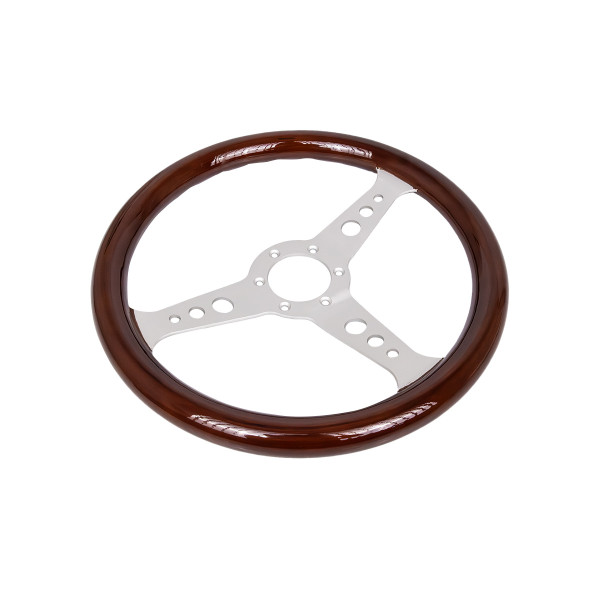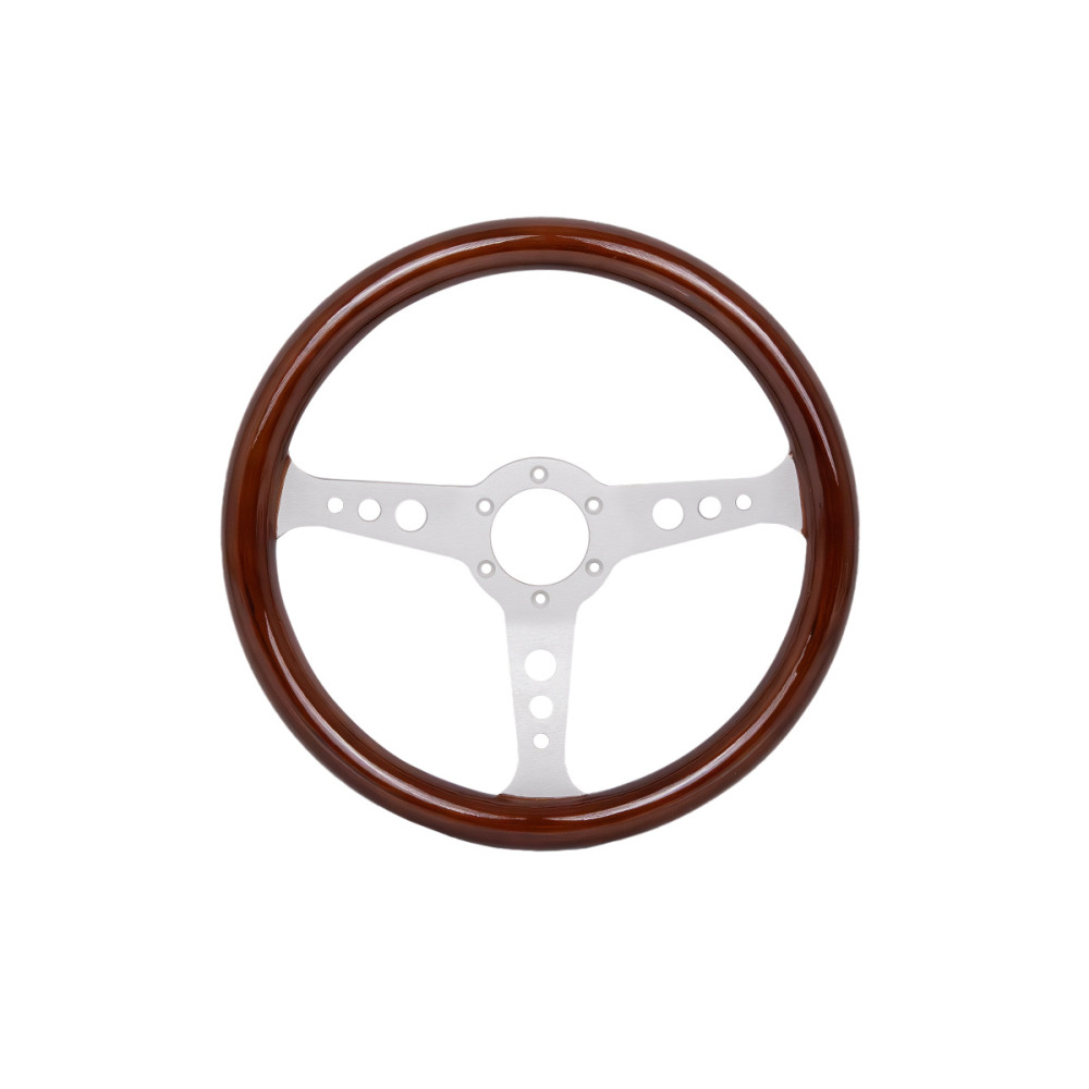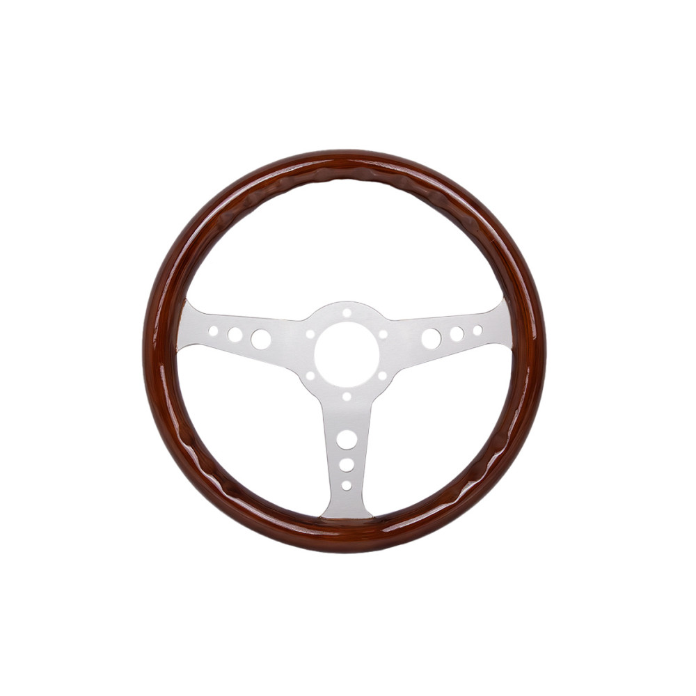 350mm Silver Wood Steering Wheel - Classic Car Upgrade