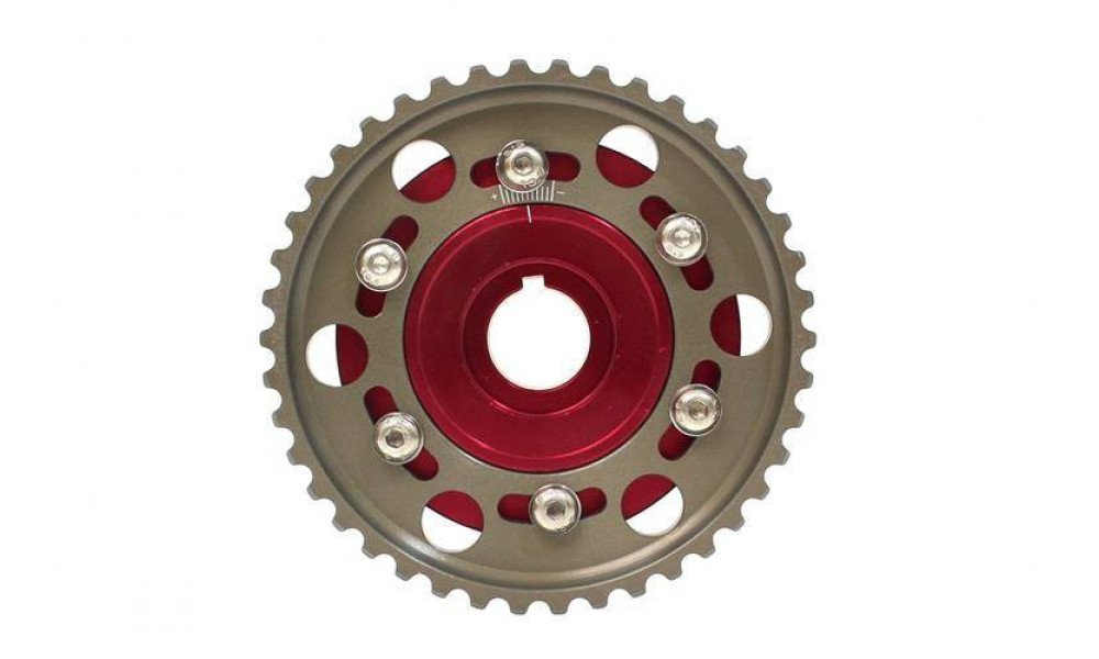 Adjustable wheel of timing belts for engines. This wheel is used to change the settings when modifying the engine.