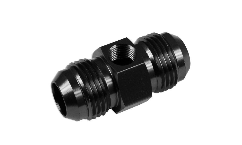AN10 Male-Male Adapter with Inline Port 1/8 NPT Black