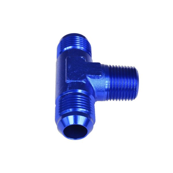 Upgrade your automotive plumbing with the AN6 Male-Male Tee Fitting 1/8" NPT in a striking blue finish. This high-quality fitting is designed for optimal performance and durability, making it an essential component for any serious car enthusiast or professional mechanic.