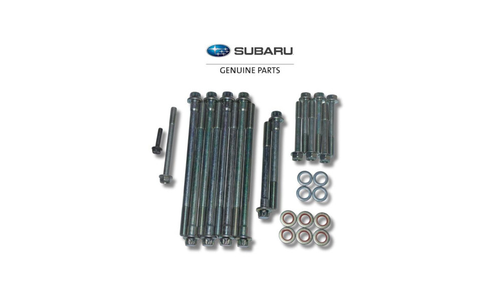 This complete kit includes all necessary Genuine Subaru (OEM) case bolts, washers, and seals required to build the block.