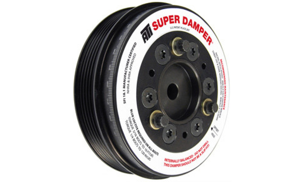 ATI’s Super Damper for late model 1.6L Mini Cooper engines is a direct replacement for the OEM unit, designed to dampen torsional crankshaft vibrations across all RPM levels and protect against engine harmonics.