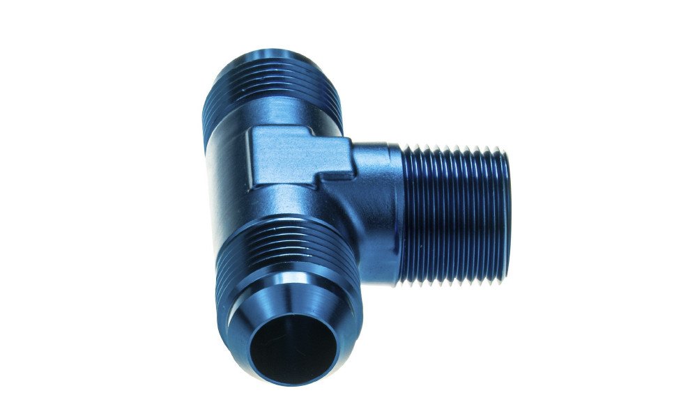 Blue 1/4" NPT to AN6 JIC Flare Fuel Adapter T-Piece