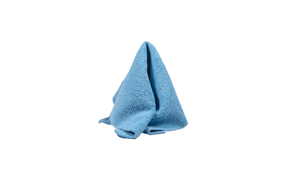 Blue universal microfiber towel suitable for interior plastics, wheels, and quick detailer application.