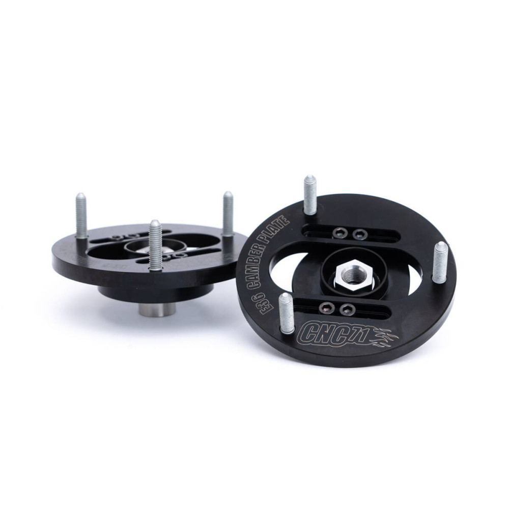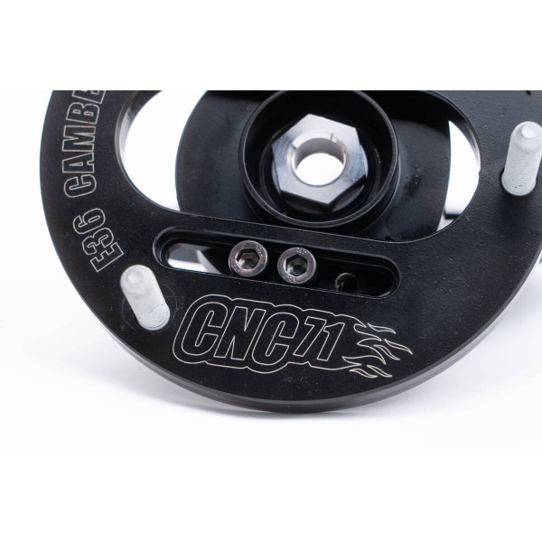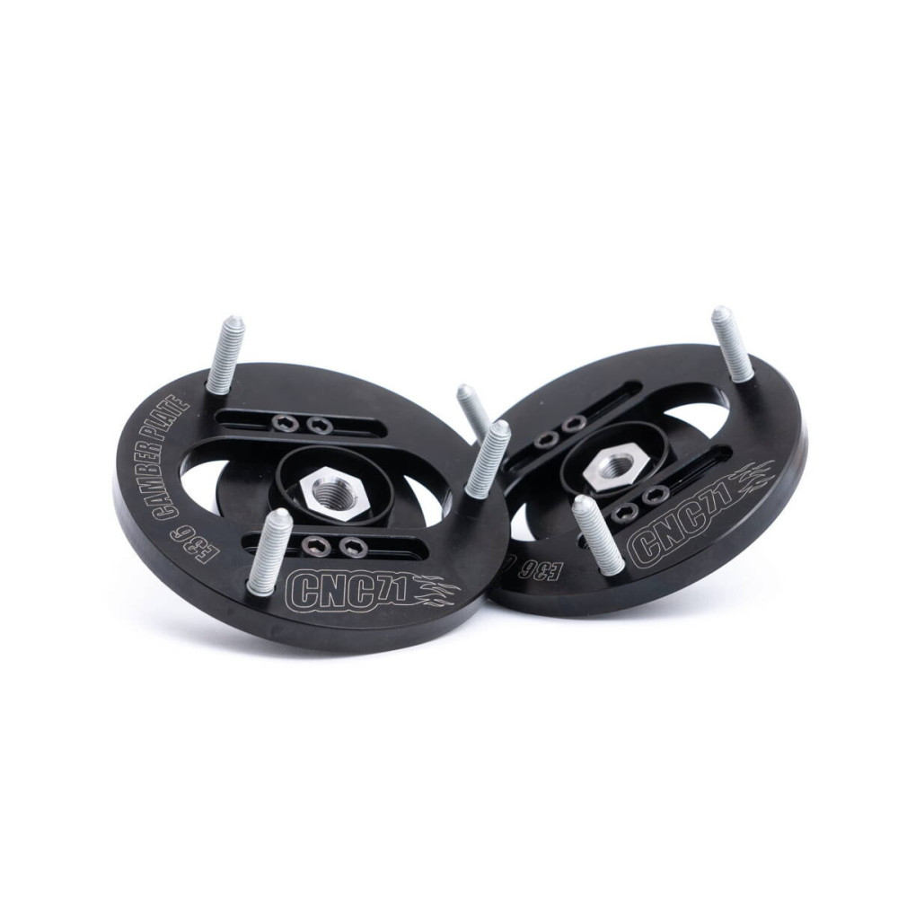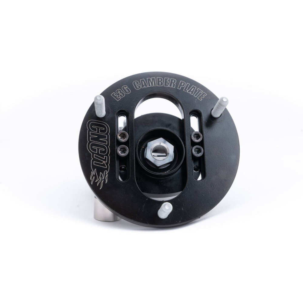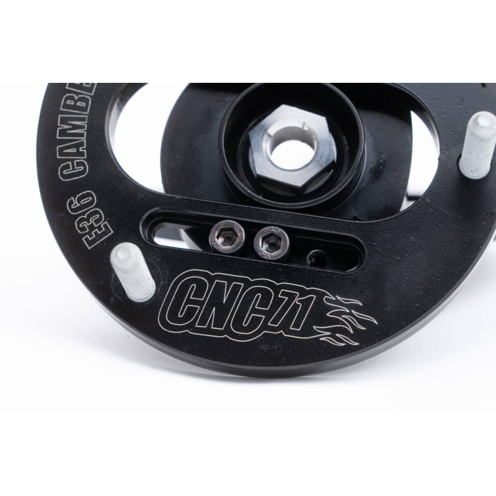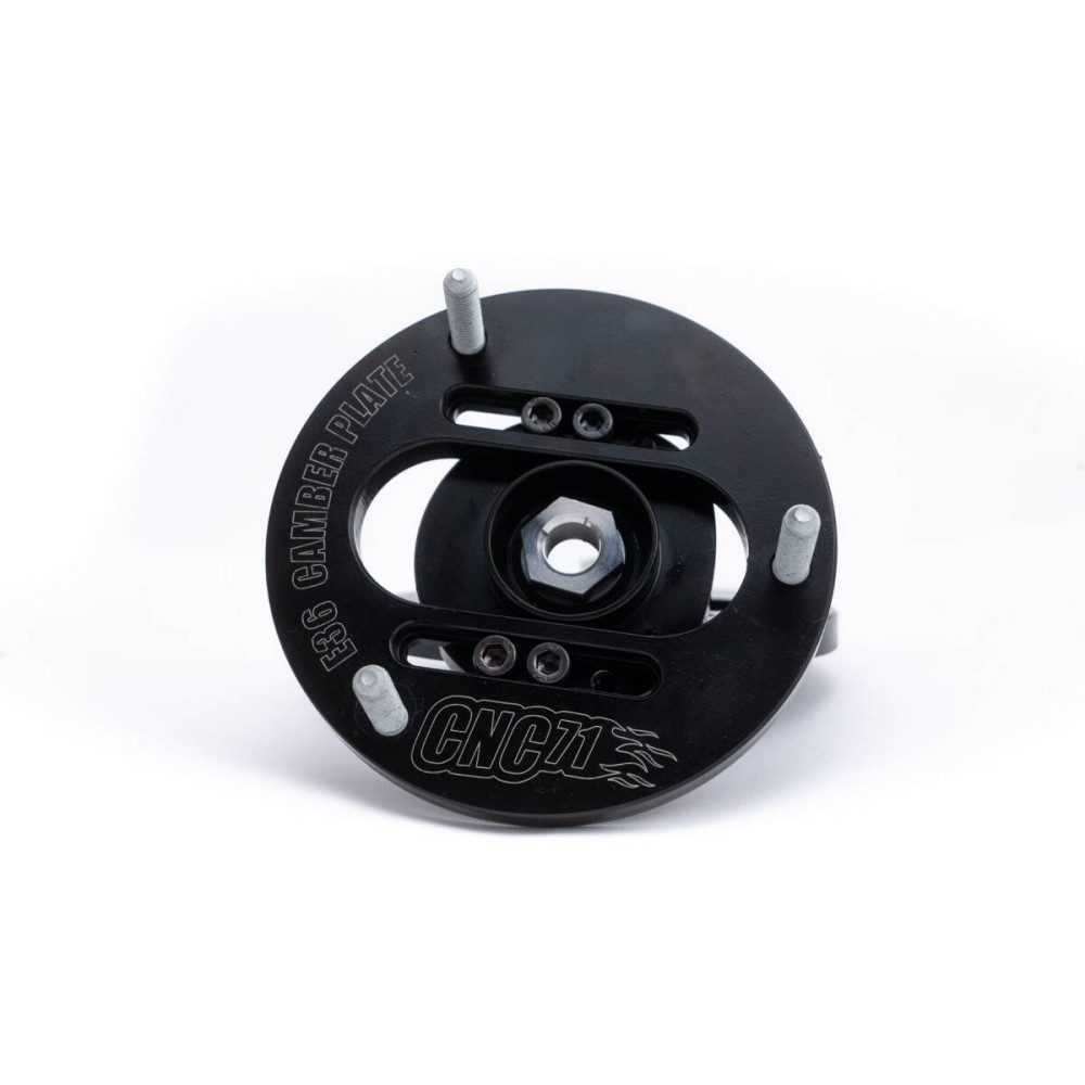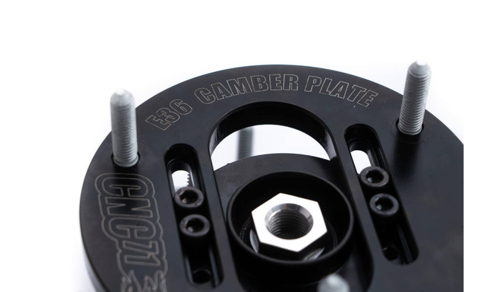 3D camber plate for BMW E36/E46/E39/E8x/E9x designed by CNC71 Motorsport allows to adjust front wheel geometry within +/- 3 degrees from the stock position.