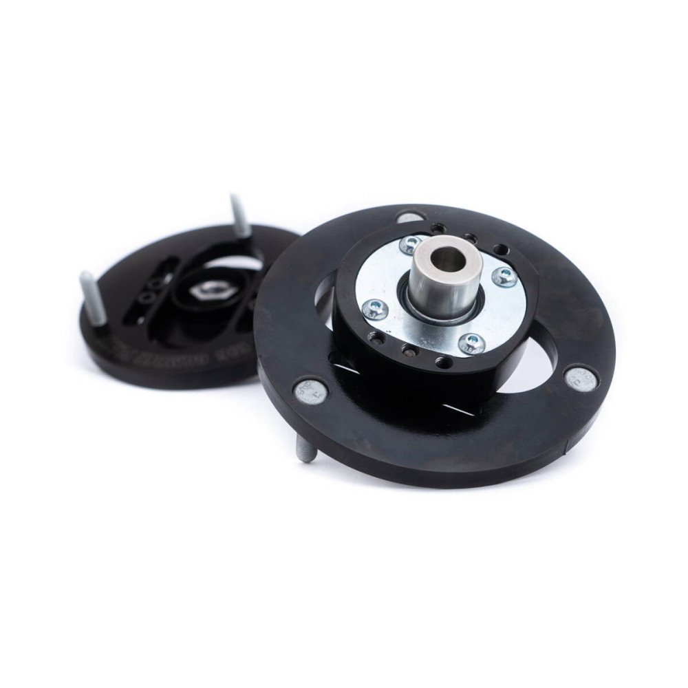 • The spacing of mounting holes around the plate's entire circumference allows for correction / modification of the car's front suspension geometry to a very large extent