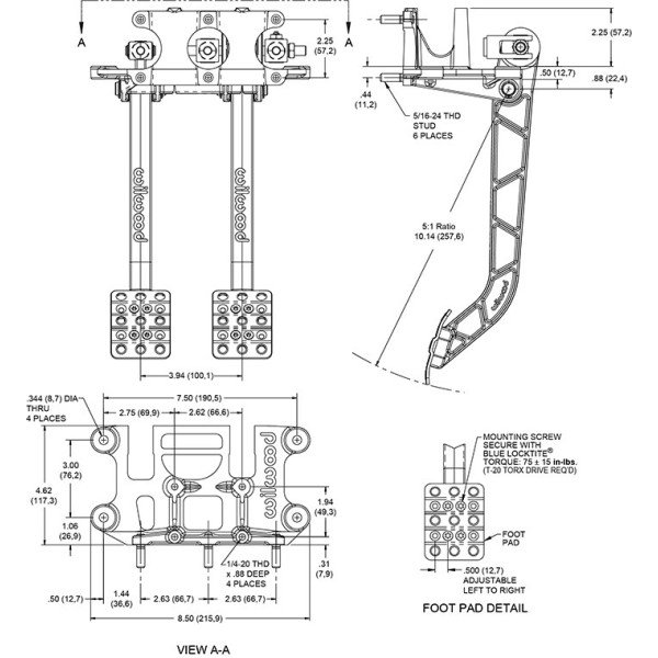 Wilwood 340-13835 Reverse Swing Mount Brake and Clutch Pedal