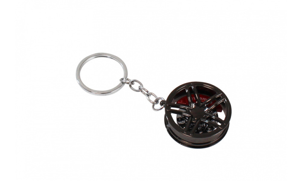 Keychain in the shape of car rim with calipers, very good reproduction of details.