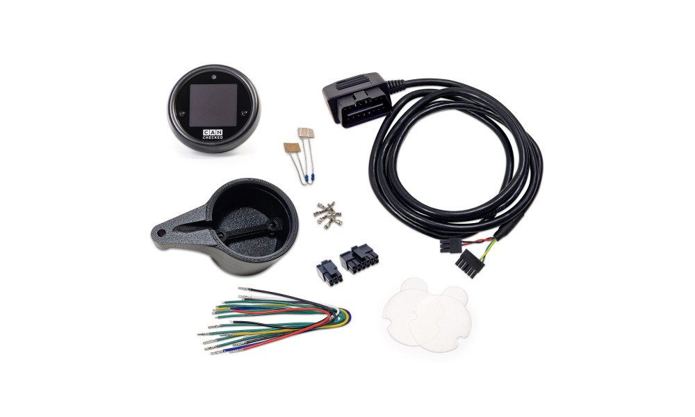 The CANchecked MFD15 Gen2 is a compact OLED data display designed to keep key engine and vehicle parameters in view with excellent readability, including in direct sunlight. This Mini-specific kit includes a vehicle-specific bezel and connection cable set. Operation is via two faceplate push buttons, with support for an optional external rotary knob.