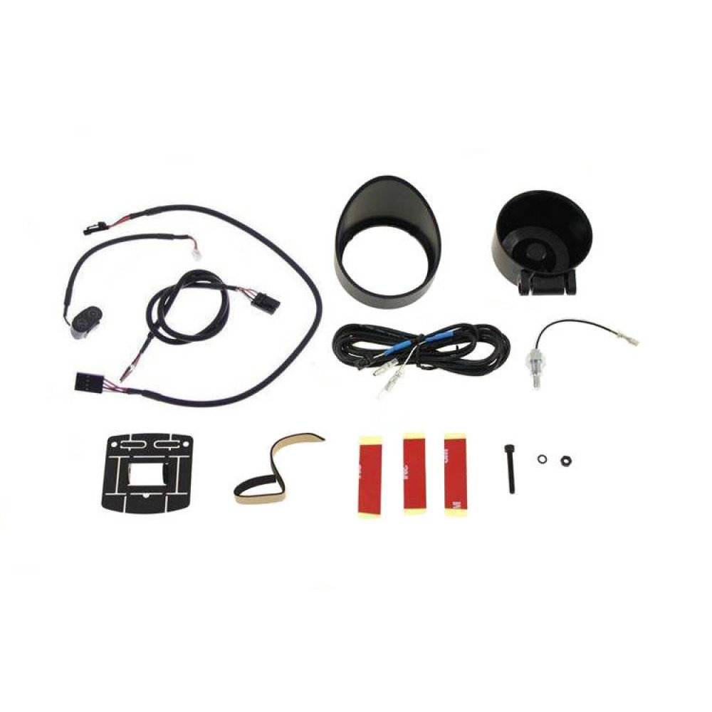 The gauge is illuminated in white or amber. Mounting cup visible in the pictures in the set.