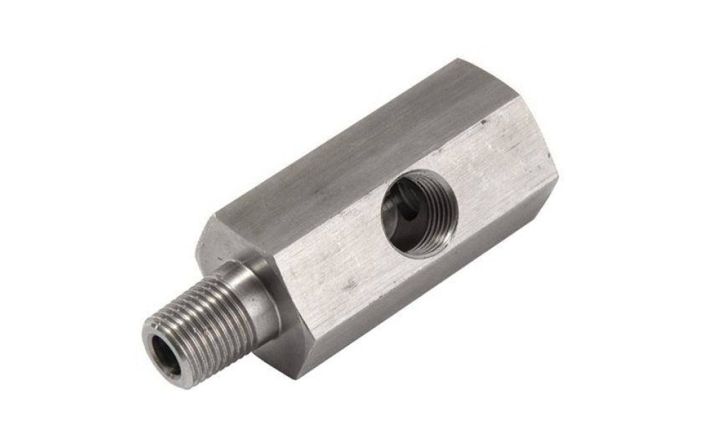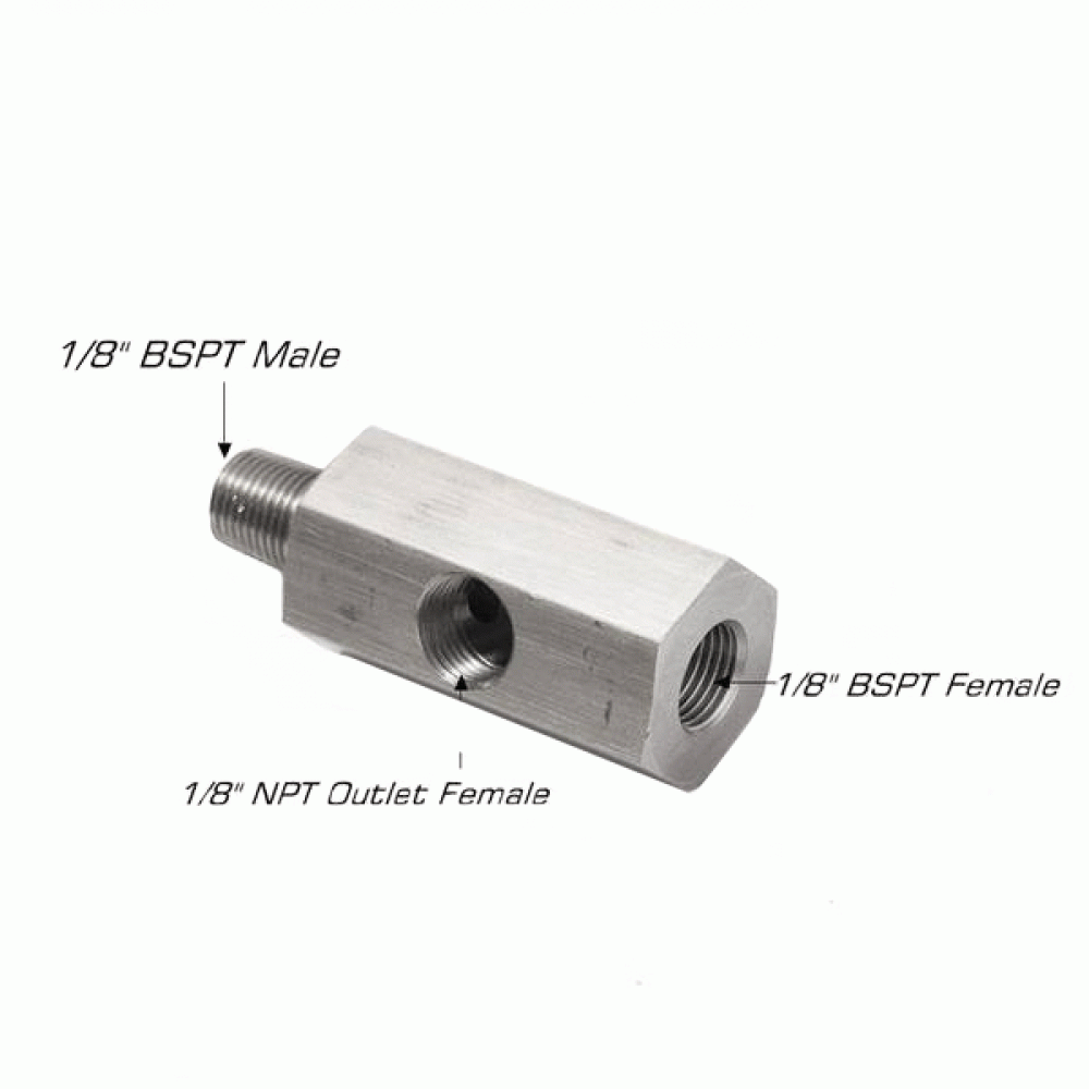 Universal 1/8'' BSPT Tee for taping into OE oil pressure sender to allow for turbo oil supply or aftermarket oil pressure gauge.