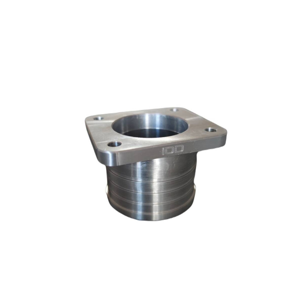 Milled intake manifold adapter allowing the use of 63mm silicone hose.
