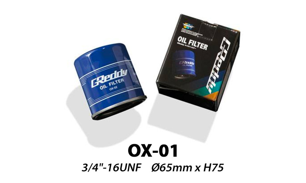 Made in Japan by Trust, the GReddy OX-01 is an oil filter developed for performance-focused Japanese applications, aiming for high filtration efficiency with minimal pressure drop through the element.