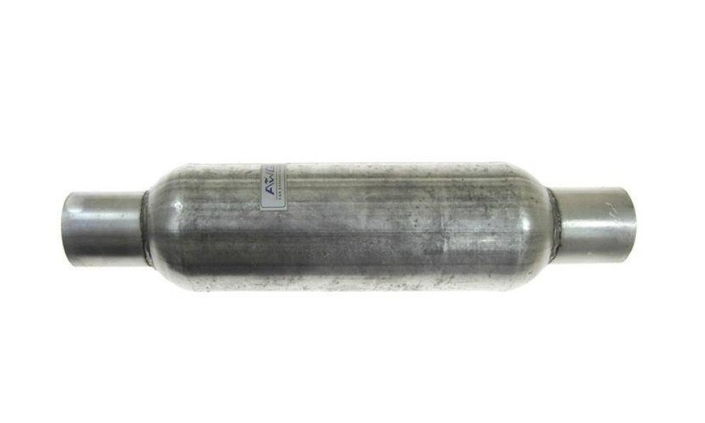 The completely through silencer does not have any narrowing / hearts causing swirl of exhaust gases.