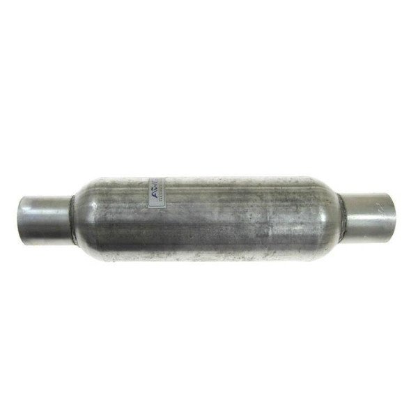 The completely through silencer does not have any narrowing / hearts causing swirl of exhaust gases.