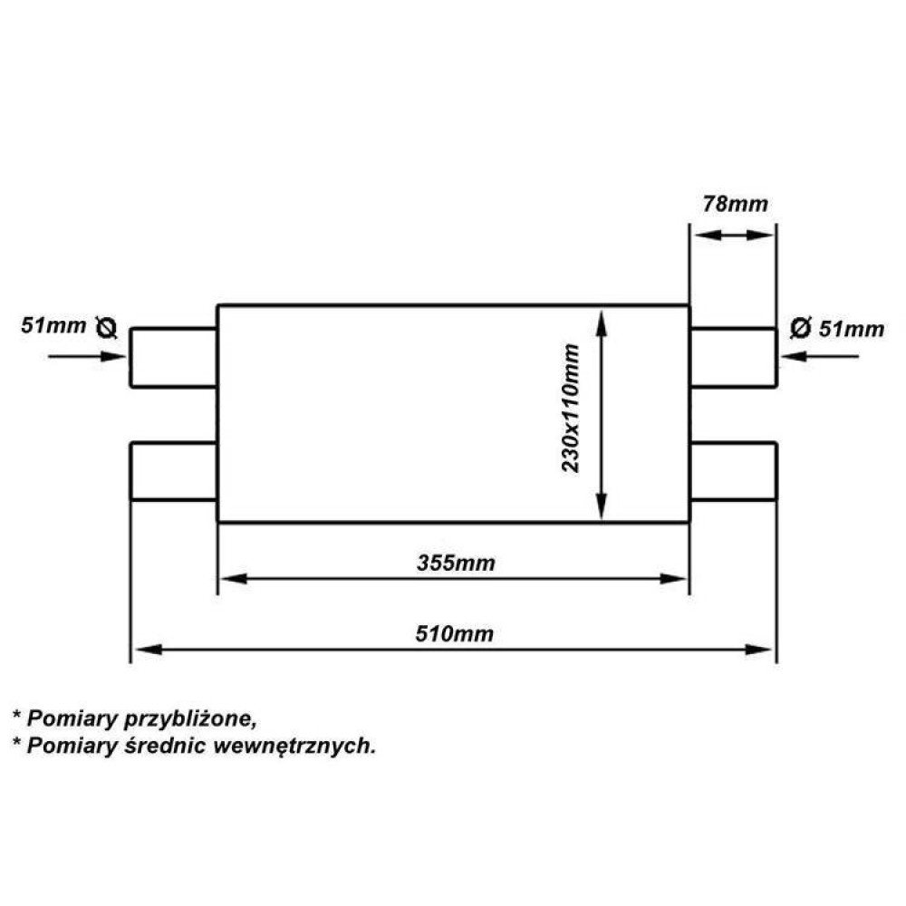 51mm Center Muffler LT 304SS - 355mm Performance Upgrade