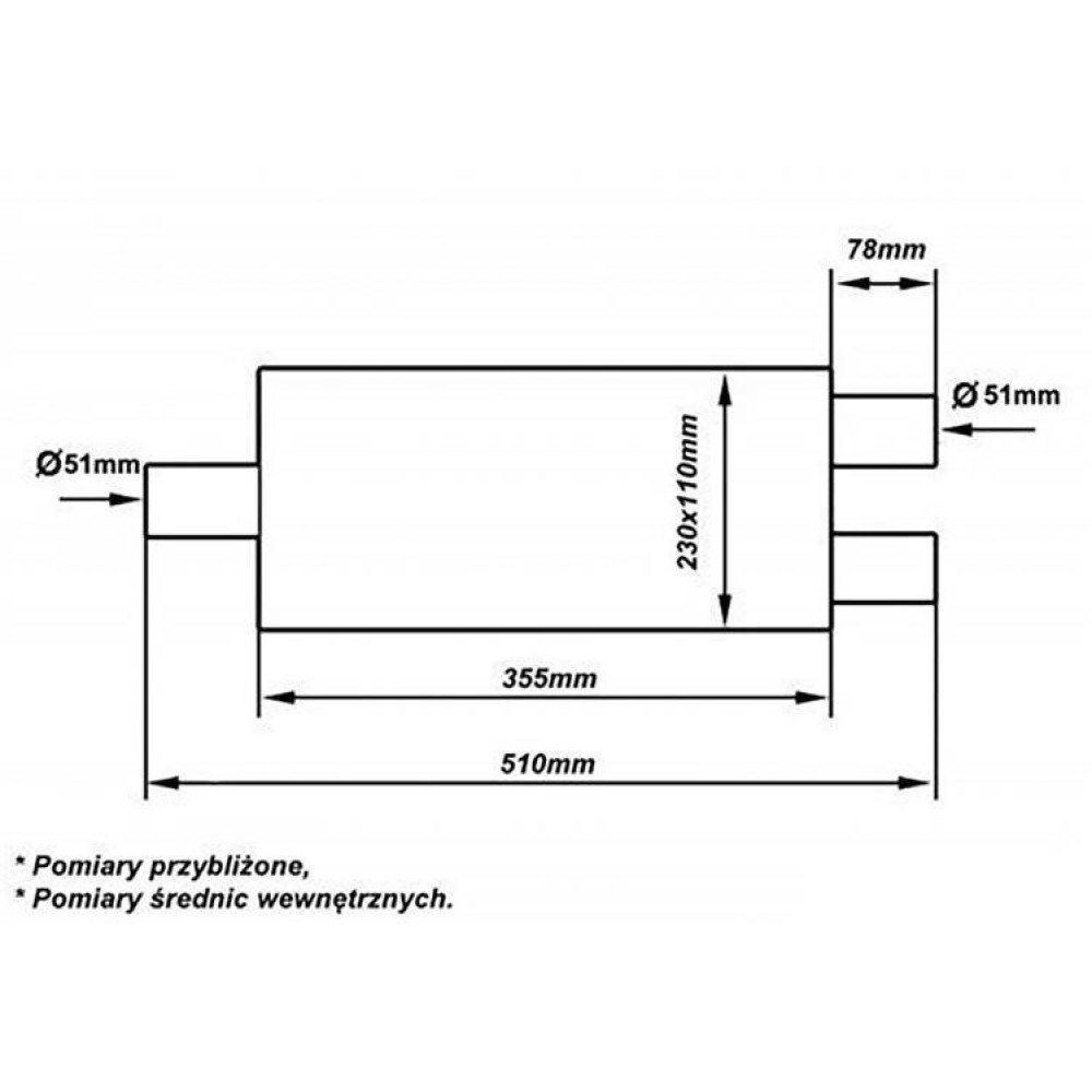 51mm Center Muffler LT 409SS - 355mm Performance Upgrade