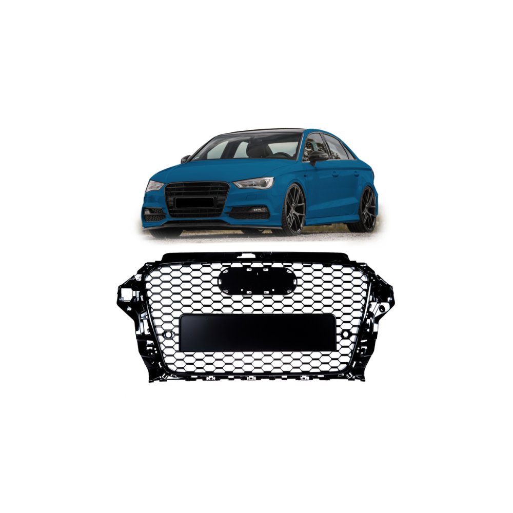 This AUDI A3 (8V) Sport Grille in Gloss Black is the perfect upgrade for your 2012-2016 model. Made from high-quality ABS Plastic, it is designed to fit the Hatchback 3D, Hatchback 5D, Sedan, and Cabrio body types.