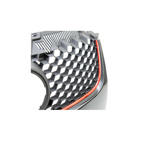 Enhance the look of your VW GOLF V (2003-2008) with the Sport Grille Red Strip. Available in gloss, black, or with red trim, this grille is made of durable ABS plastic, ensuring long-lasting performance.