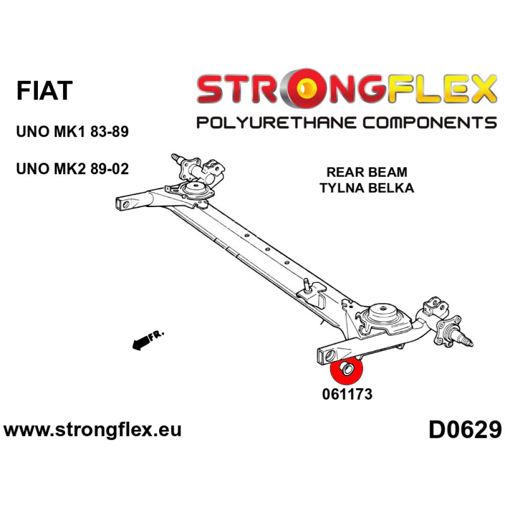Compatible with a range of Fiat Uno models, including the MK1 and MK2 variants, this rear beam bush ensures a perfect fit and optimal performance. The robust construction from premium polyurethane material not only enhances the longevity of the component but also significantly improves the vehicle's stability during cornering and acceleration.