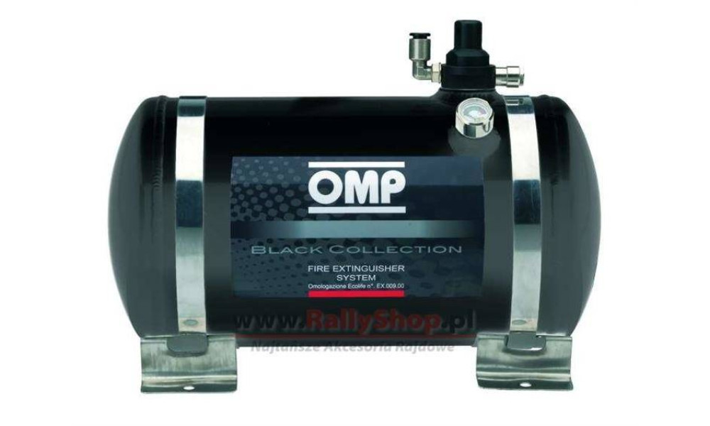 OMP electric fire extinguishing system from the Black collection. This collection is characterized by the system cylinder made of a solid steel alloy.
