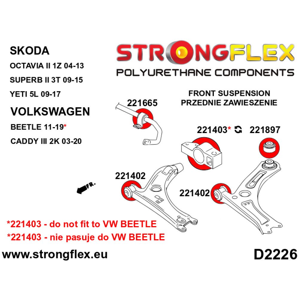 Front Anti Roll Bar Bush for Audi, VW, Seat, Skoda - 221665B