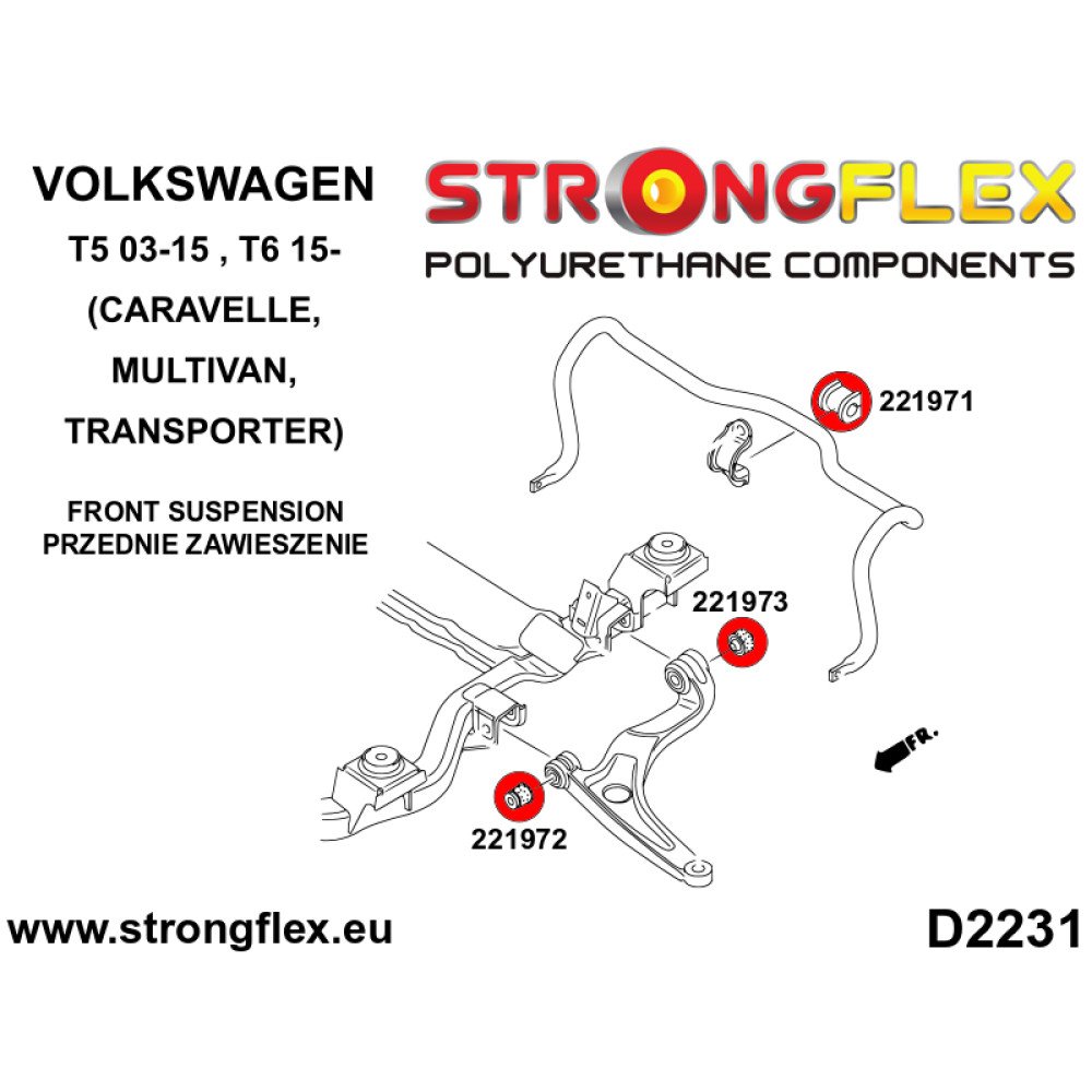 Front Lower Wishbone Bush 90ShA for VW T5/T6 - 221972A