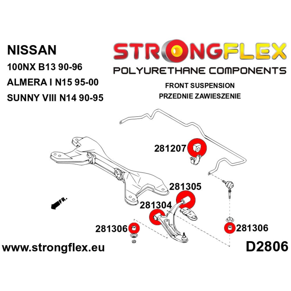 Front Suspension Polyurethane Kit for Nissan 100NX & Almera - Ref 286099B