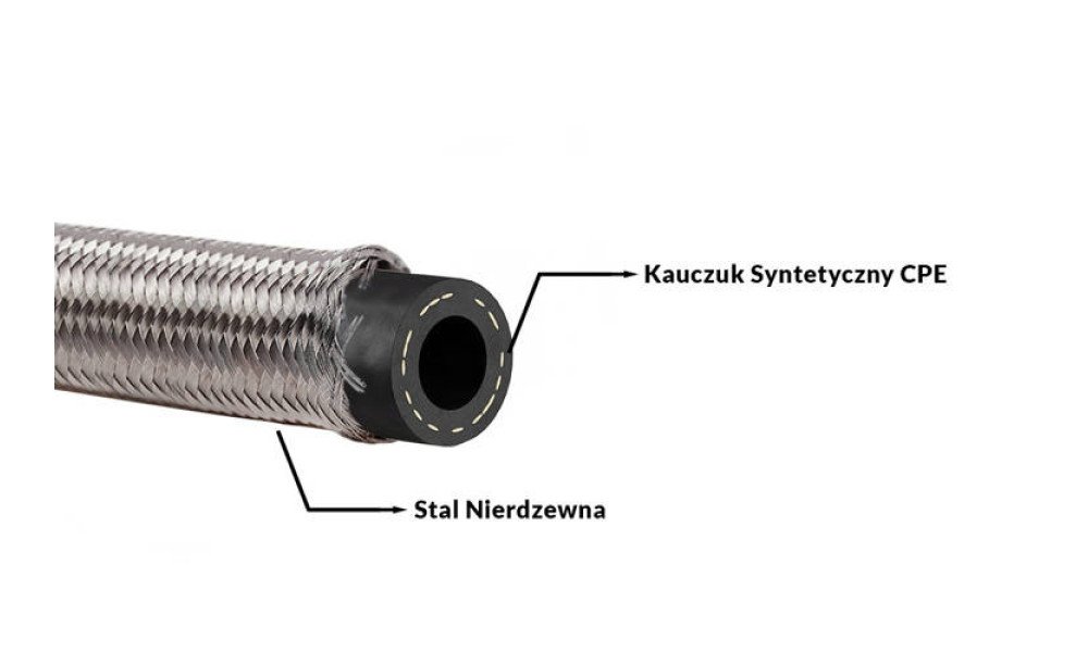 - Flexible hose cut to ordered length (up to 5m in one piece)