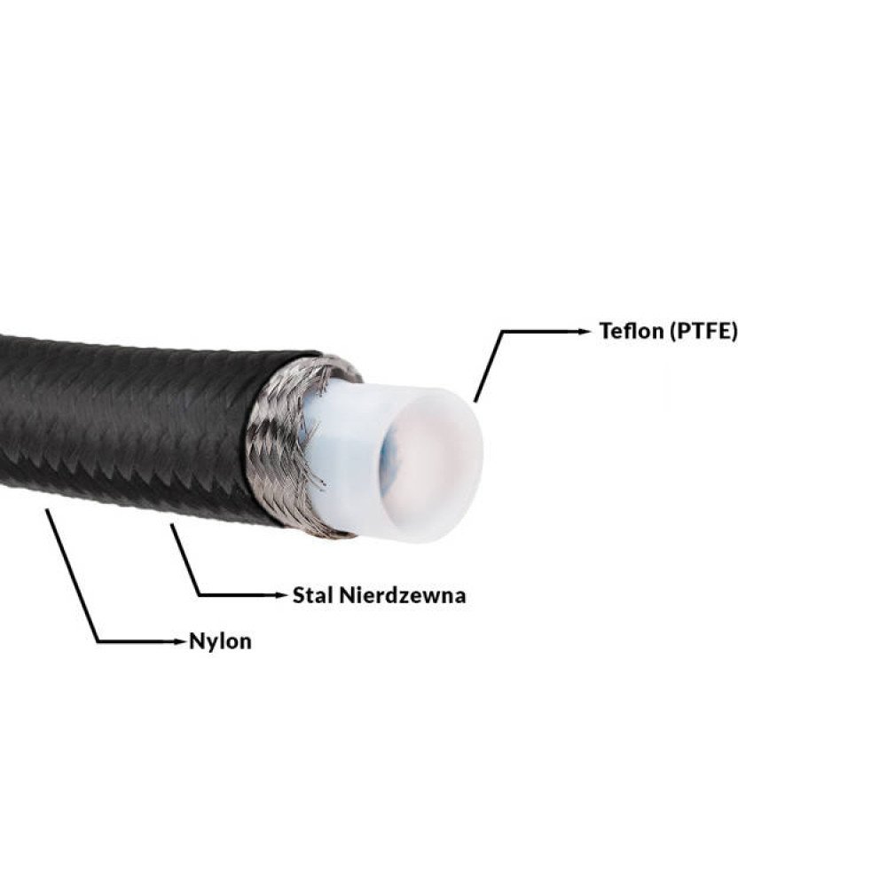 Sporty, Teflon brake hose with stainless steel braiding