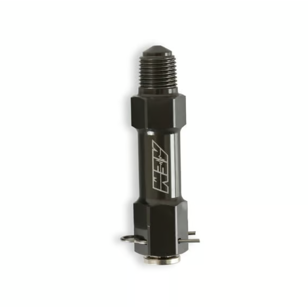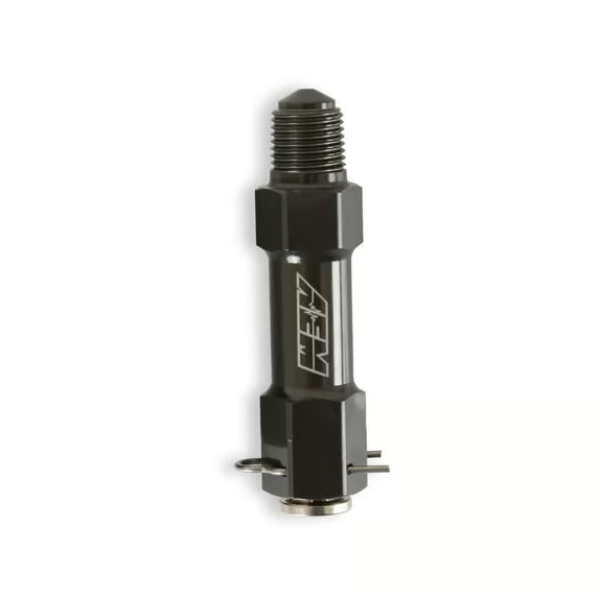 The AEM V3 WMI Injector is a mechanical water/methanol injector designed to improve atomization for faster inlet air temperature cooling while using less fluid to maintain cooling. It uses AEM’s Swirl Generator Technology, which also controls flow through a fixed injector orifice.