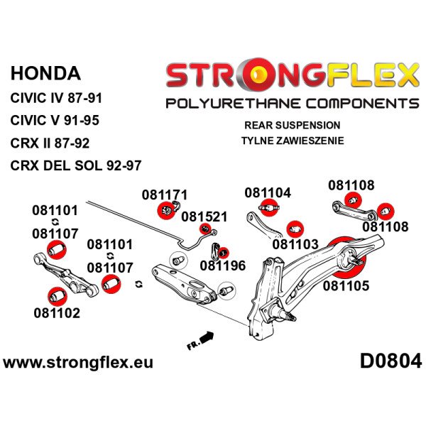 - Before purchasing, verify the diameter of the rear lower arm bushing (081101 31mm or 081107 35mm).