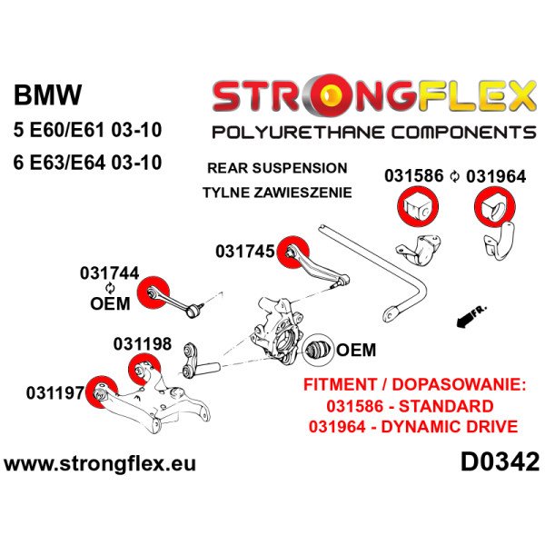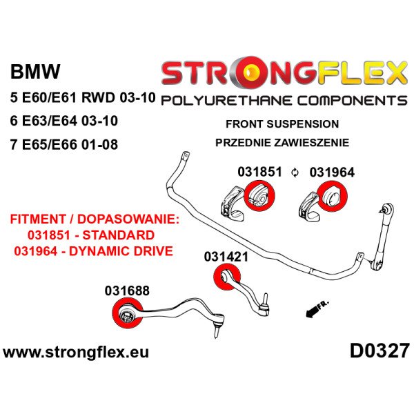 - For vehicles equipped with a DYNAMIC DRIVE system (active anti-roll bar), opt for bush 031964. For standard anti-roll bar setups, choose 031851 (front) and 031586 (rear).