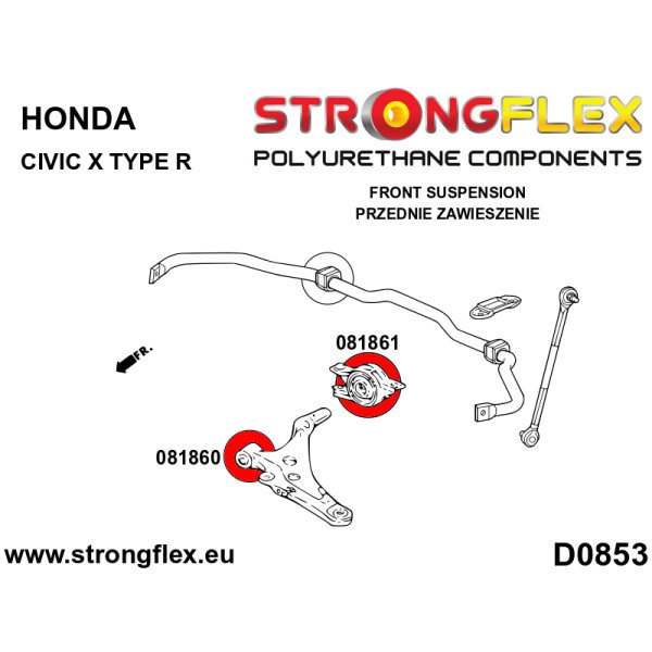 Elevate your Honda Civic X FK8 Type R's performance with our premium Front Wishbone – Sport Front Bush. Designed for enthusiasts who demand precision and responsiveness, this bush is engineered to enhance your vehicle's handling dynamics while maintaining durability under rigorous driving conditions. The 90ShA hardness rating ensures that you experience superior stiffness and control, translating to improved cornering and stability at high speeds.