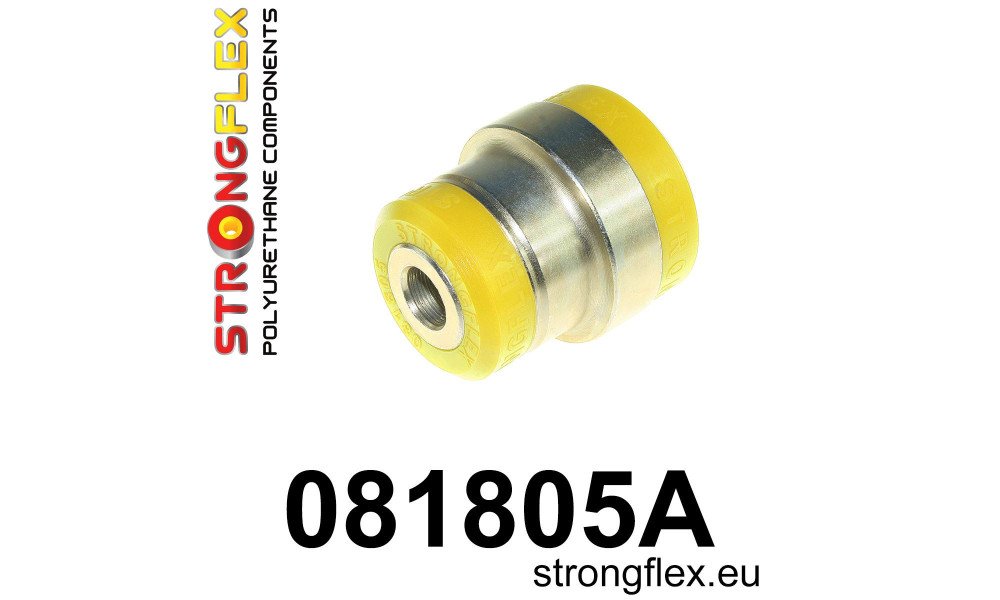- This bush is exclusively offered in a 90ShA hardness (yellow) to match the original hard rubber compound. Opting for the 80ShA hardness bush (red) will compromise the vehicle's handling characteristics compared to the factory rubber bush.