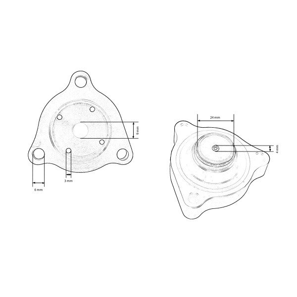 - Spacing of mounting screws: 48mm