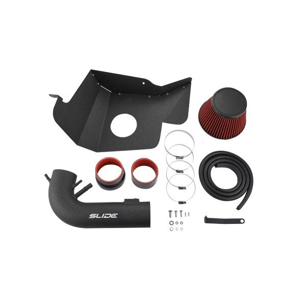 The Slide intake system designed for Ford Mustang GT 5.0L V8 cars (2015-2017) is an advanced modification that improves engine performance and sound. Thanks to its innovative design, the system optimizes air flow to the engine, resulting in a noticeable increase in power and better throttle response. It is the perfect option for Ford Mustang owners who want to improve driving dynamics and give their vehicle a more sporty character.