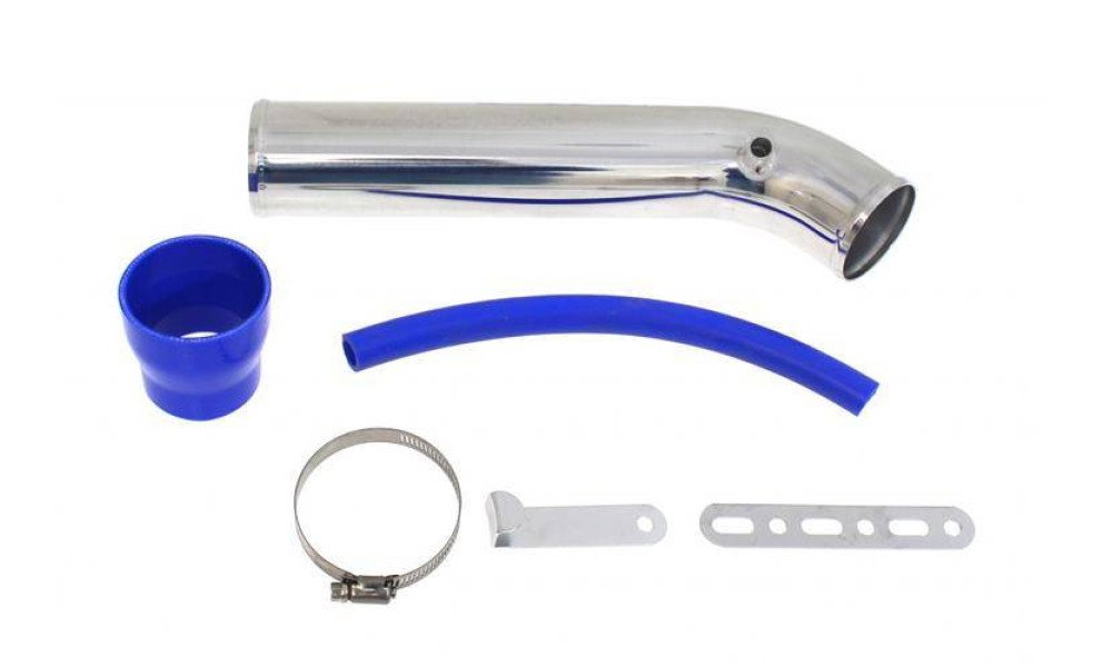 ProRacing intake systems. These systems are dedicated to individual car models. They have all dimensions (length, width, cross section, and additional holes if needed) (adapted to the given model). ProRacing systems are characterized by maximum power and torque increase. The inlets are made of polished steel-aluminum pipes. The kit includes: intake manifold adapter, polished pipe, clamps, connectors, handles (depending on the model, the polished pipe has the necessary openings - sensor outputs and pneumothorax, then connecting pipes are attached - all elements are shown in the picture)