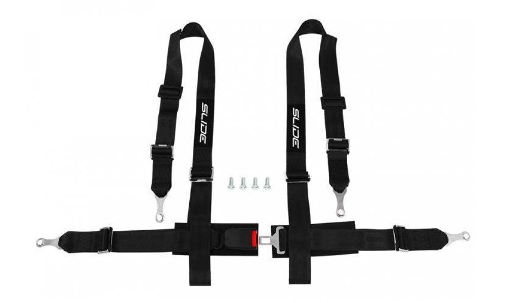 SLIDE 4-point sport safety belts, made of textile and partly of composite.