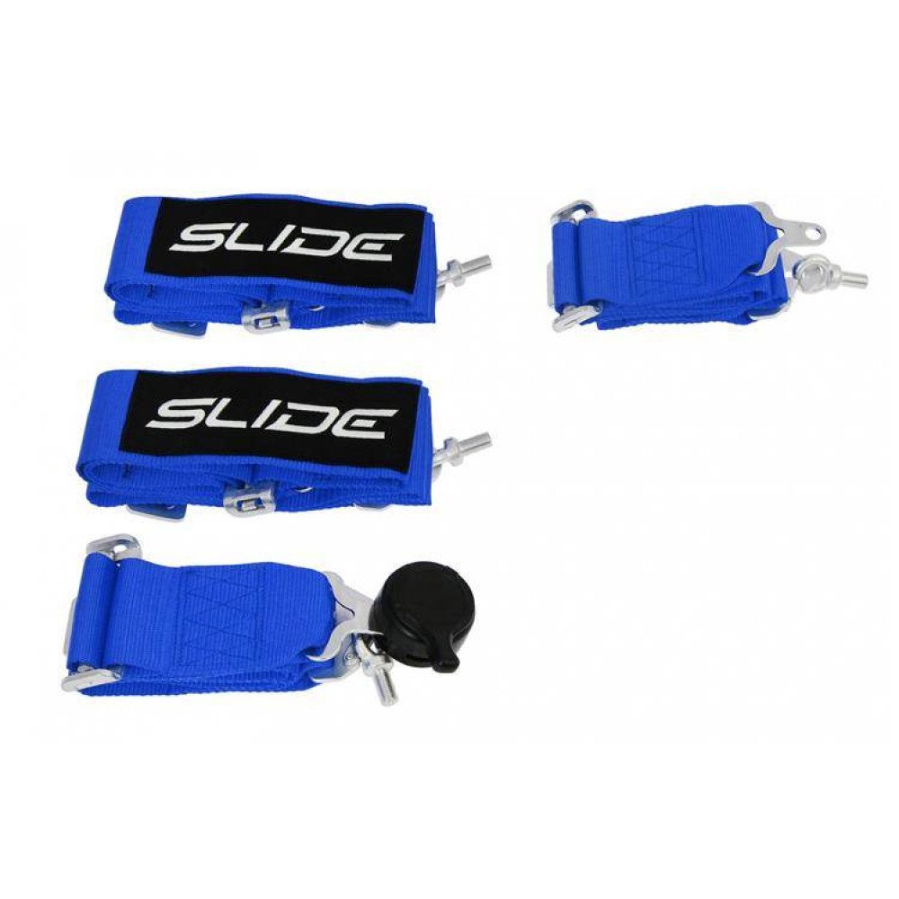 SLIDE 4-point sport safety belts, made of textile and partly of composite.
