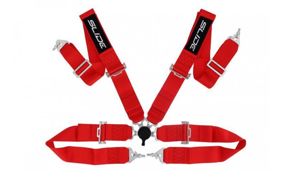SLIDE 4-point sport safety belts, made of textile and partly of composite.