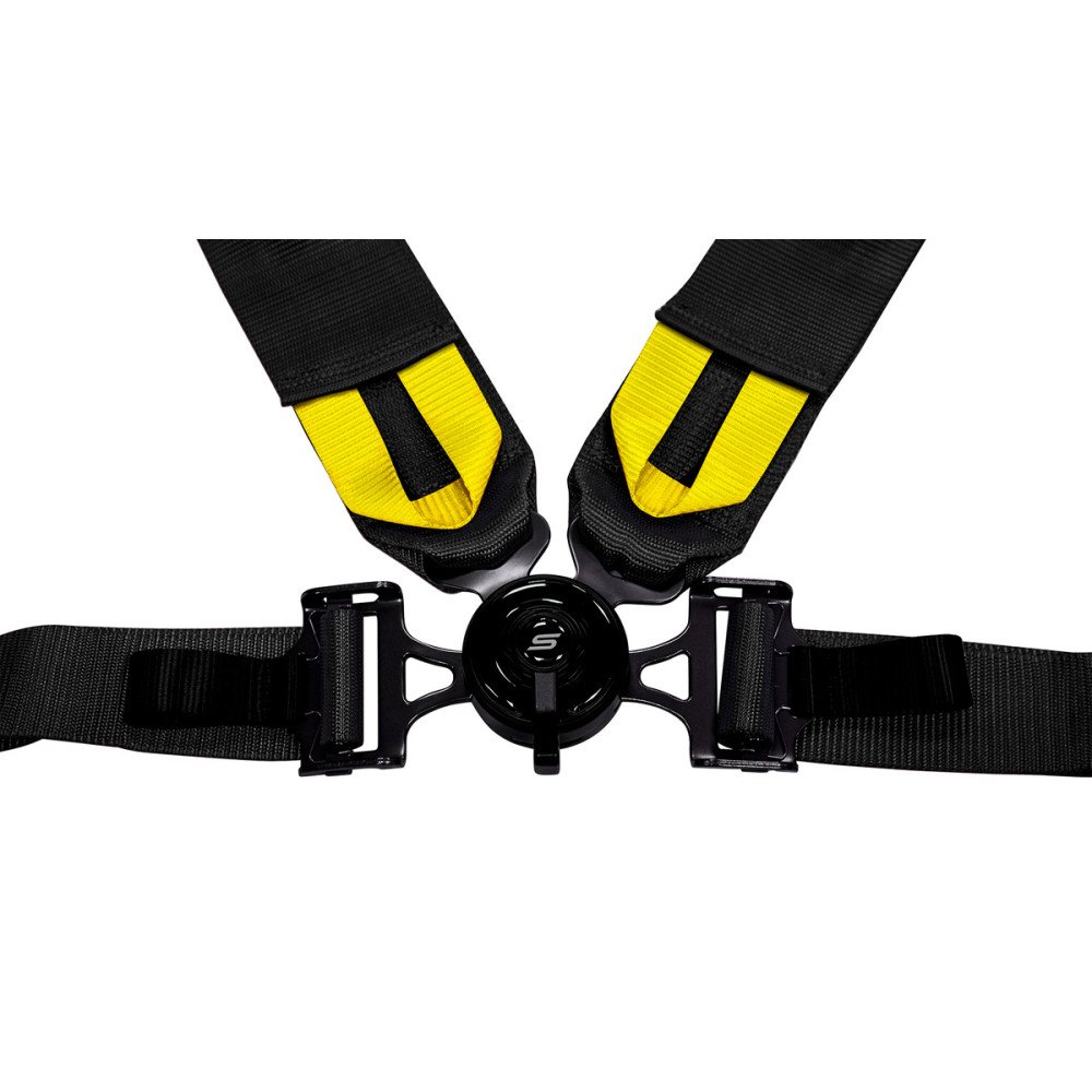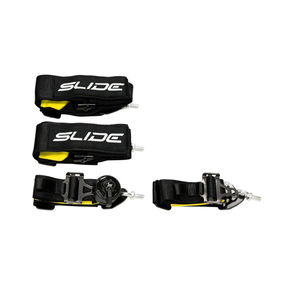 SLIDE 4-point sport safety belts, made of textile and partly of composite.