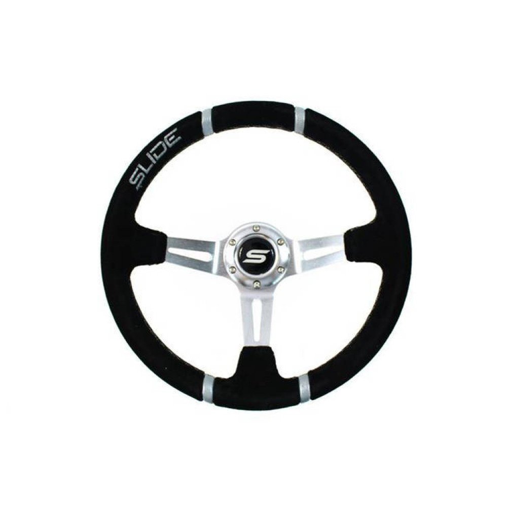 The SLIDE steering wheel is a high-quality accessory designed for automotive enthusiasts who wish to improve the ergonomics, comfort, and precision of their vehicle's handling. With its sporty design and aesthetics, SLIDE steering wheels are perfect for vehicles prepared for track use. This version of the steering wheel stands out with its exceptional suede construction, providing a secure grip and enhanced comfort. Additionally, the double silver stripes on the rim not only add a sporty touch but also help to precisely identify the central position of the steering wheel, increasing control over the vehicle.