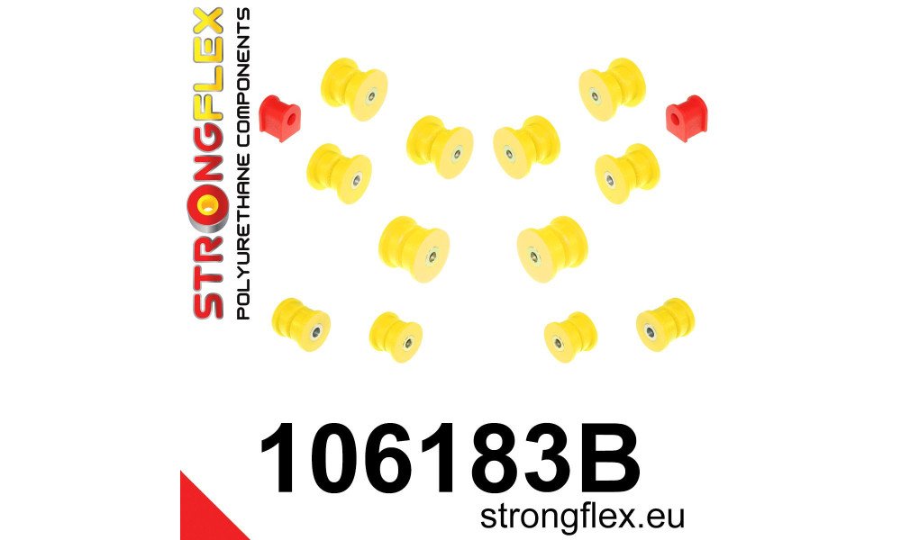 - Certain bushes in this kit are exclusively available in a 90ShA hardness (yellow) due to the original rubber bush's hard compound. Opting for the 80ShA hardness bush (red) will revert the vehicle's handling characteristics to those of the original rubber bush.
