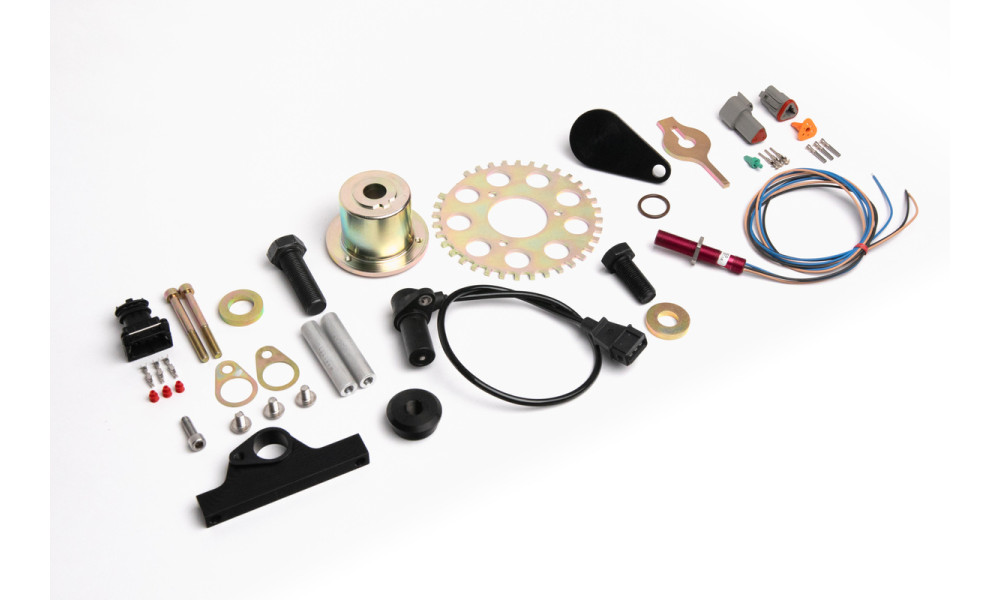 Crank trigger kit with plate 36-2 runs on magnetic sensor. Screwed directly to OEM crankshaft pulley centre bolt and oil pump housing.