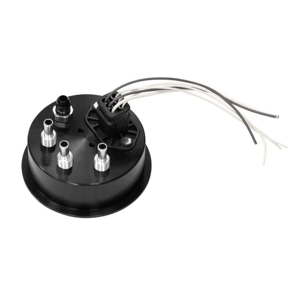 just the hat, 1xAN6 block pin, 1xAN6 push on 90deg fitting to vent, wiring and big amps connectors to handle two fuel pumps.